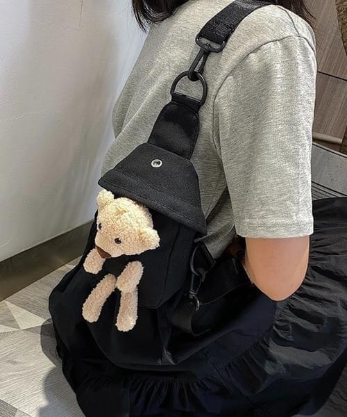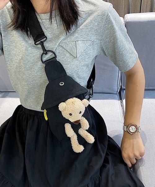 ふわふわのテディベアがポイントのショルダーバッグ。