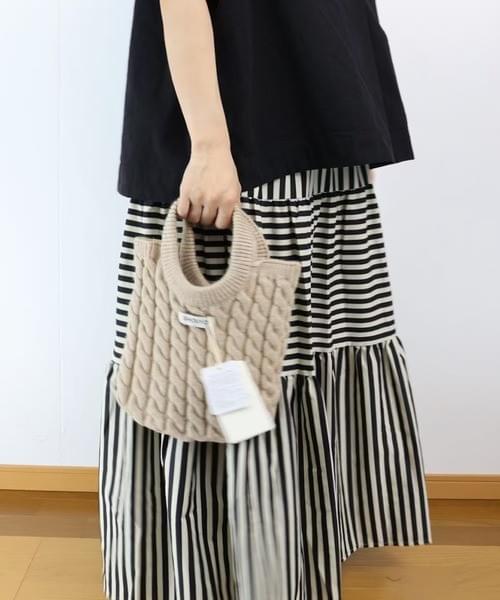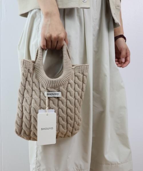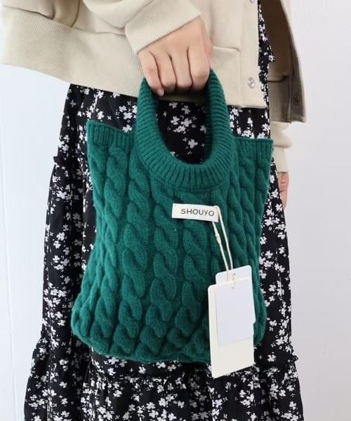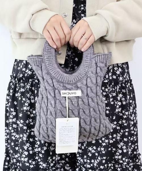 立体感のあるケーブル編みが目を引く、ニット素材のハンドバッグ。