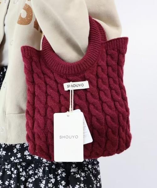 【5色展開】立体ケーブル編みニットハンドバッグ
