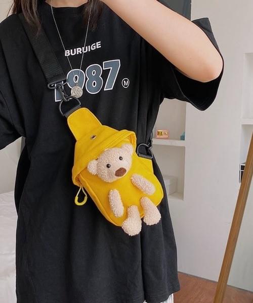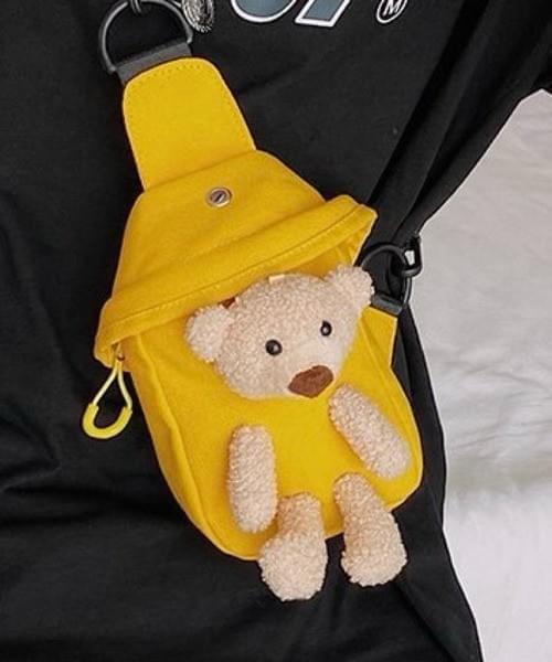 ふわふわのテディベアがポイントのショルダーバッグ。
