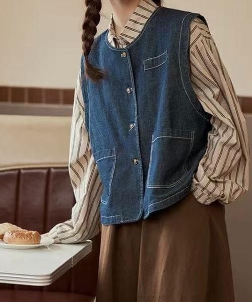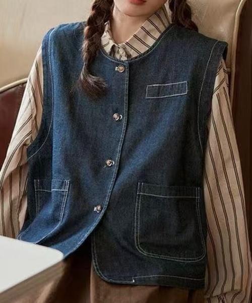 ラウンドネックとフロントボタンデザインで、カジュアルながらも落ち着いた雰囲気に仕上げました。