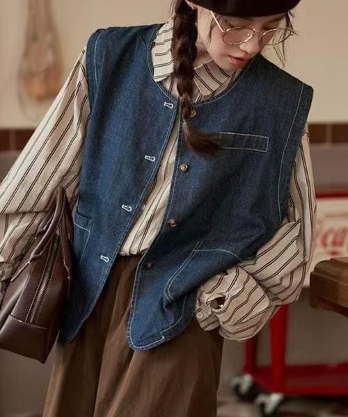 ・ストライプシャツ+ワイドパンツと合わせてトラッドカジュアルに
