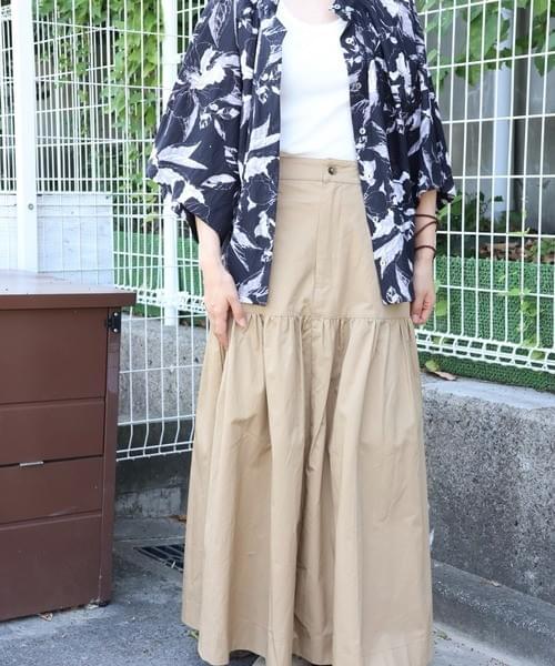 ふんわり広がるシルエットが女性らしいティアードデザインのロングスカート。