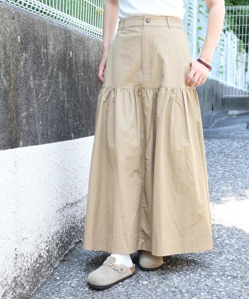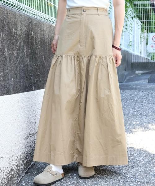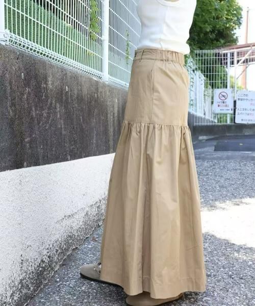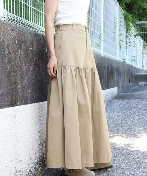 ティアードフレアロングスカート/ベージュ/大人ナチュラル
