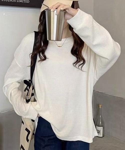 デイリーに使いやすいベーシックデザインの長袖トップス。