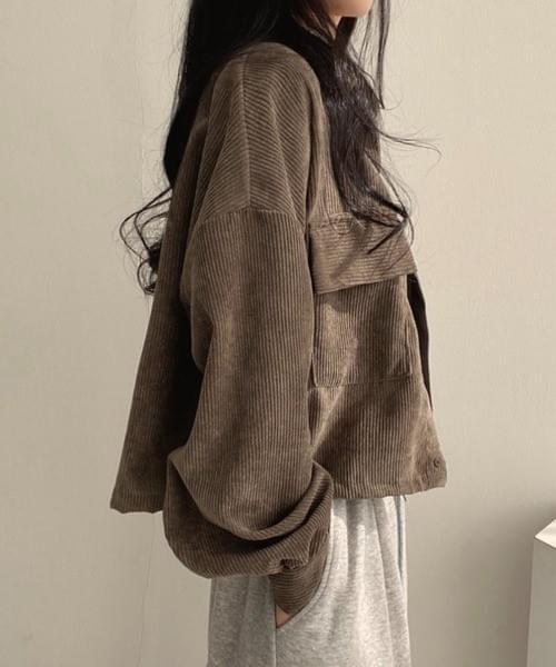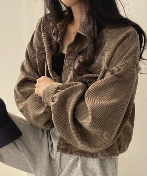 コーデュロイショート丈シャツジャケット/ブラック・ブラウン