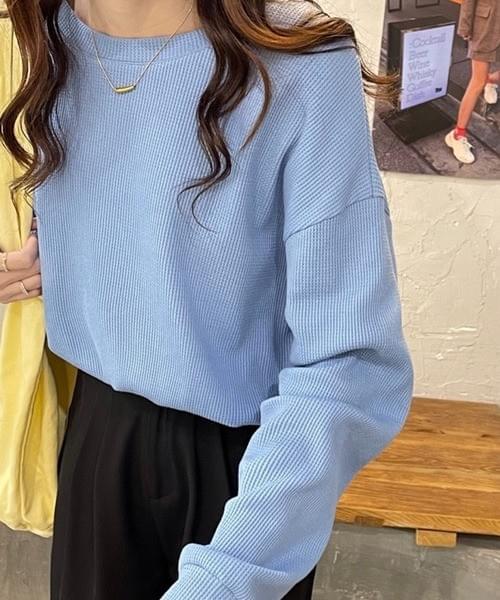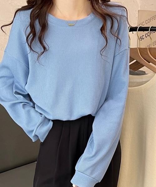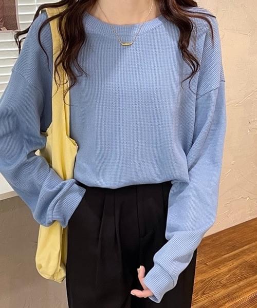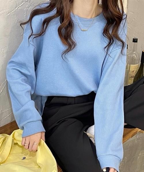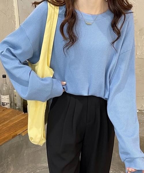ベーシッククルーネック長袖トップス/ブルー